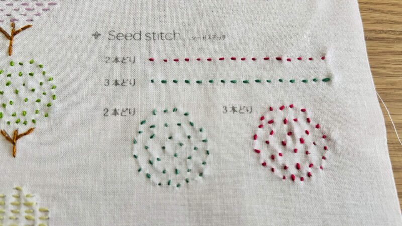 簡単そうに見えて意外と大変だったのが『シードステッチ』でした。ゴマみたいな種みたいな表現なんだろうけど細かすぎて老眼には厳しいものが…