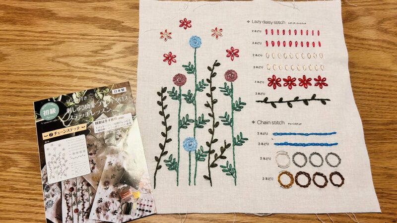 チェーンステッチと言うよりもレゼーデージーステッチの練習と言った感じの内容だと個人的には思いましたが、レゼーデージーステッチもチェーンステッチも似たようなものなのだろうか?と最終的には思ってしまいました。