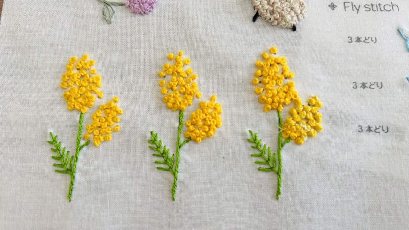 枝分かれしてるみたいなこのステッチは割と好きかもしれない。でも半円みたいな感じのフライステッチは加減が難しいと思いました。